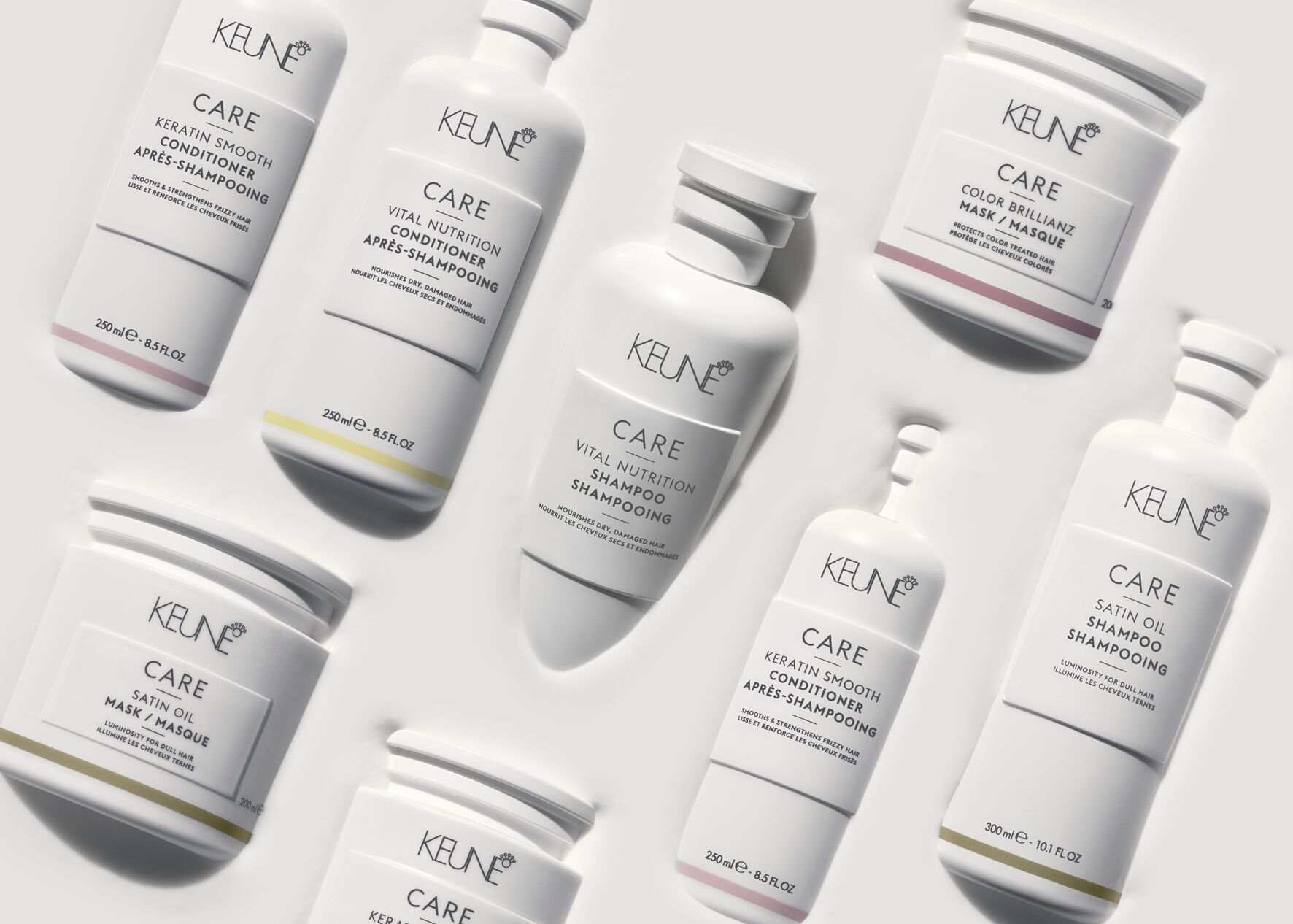 Кератин – відновлює пошкоджене волосся, покращуючи структуру зсередини, захищає волосся від згубної дії зовнішнього середовища, зволожує, утримуючи вологу всередині волосся, запобігає перерізу кінчиків волосся і повертає еластичність і блиск волоссю.
